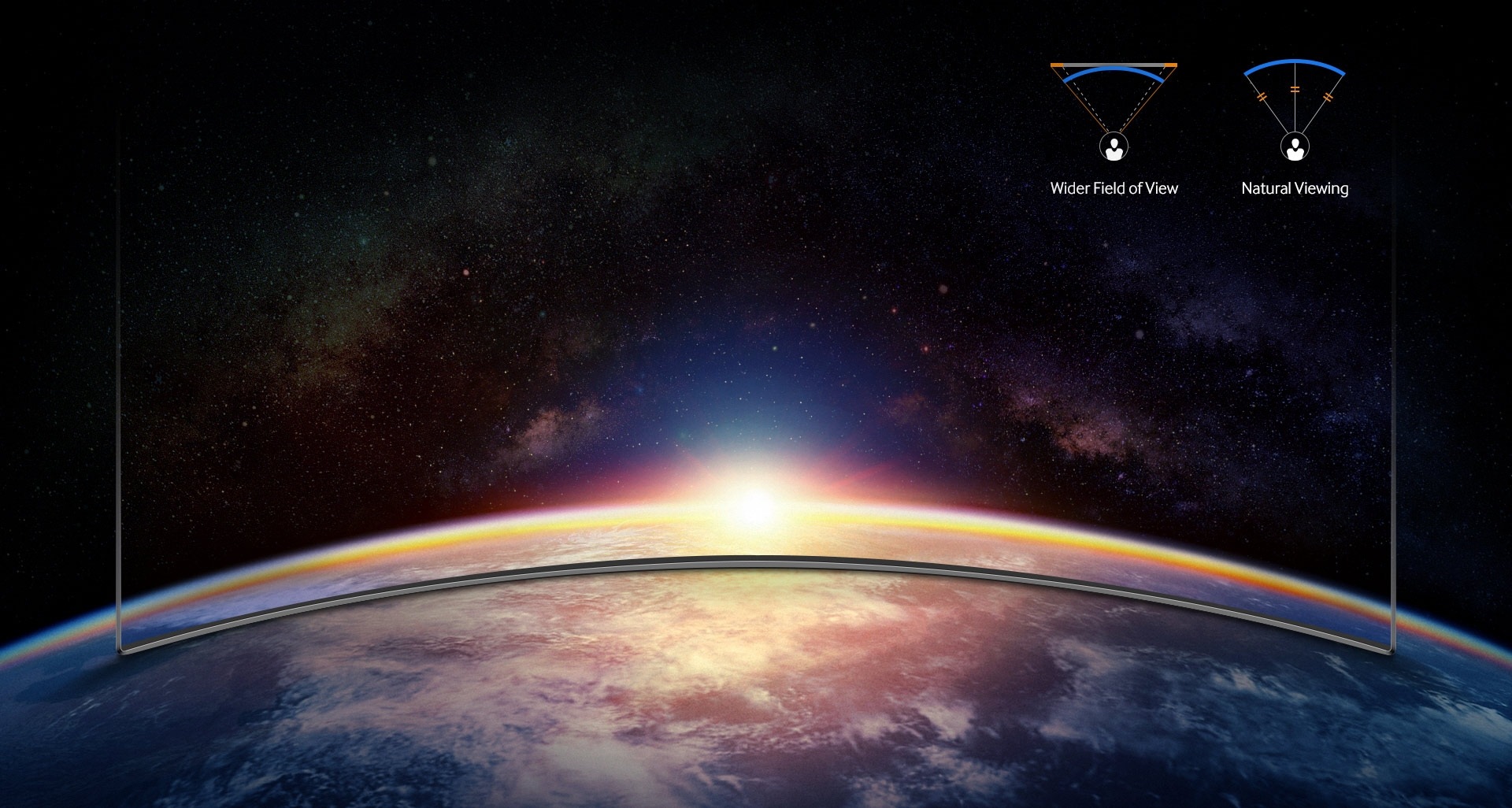 ความโค้งที่นุ่มนวลของทีวีจอโค้งจาก Samsung ช่วยให้คุณดื่มด่ำกับทุกแอ็คชั่น พร้อมมุมมองที่กว้างกว่า และระยะห่างการรับชมที่สม่ำเสมอจากจุดรับชม