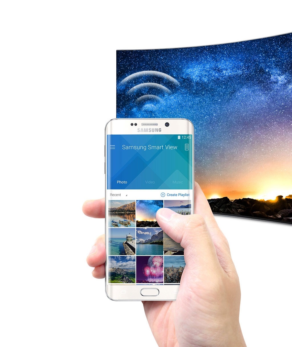 ส่งภาพ วิดีโอ และเพลงจากโทรศัพท์มือถือและพีซีของคุณไปยังสมาร์ททีวี โดยใช้แอพ Samsung Smart View มอบการผสานรวมที่ยอดเยี่ยมและการเชื่อมต่อที่ง่ายดายกับอุปกรณ์ส่วนบุคคลส่วนใหญ่