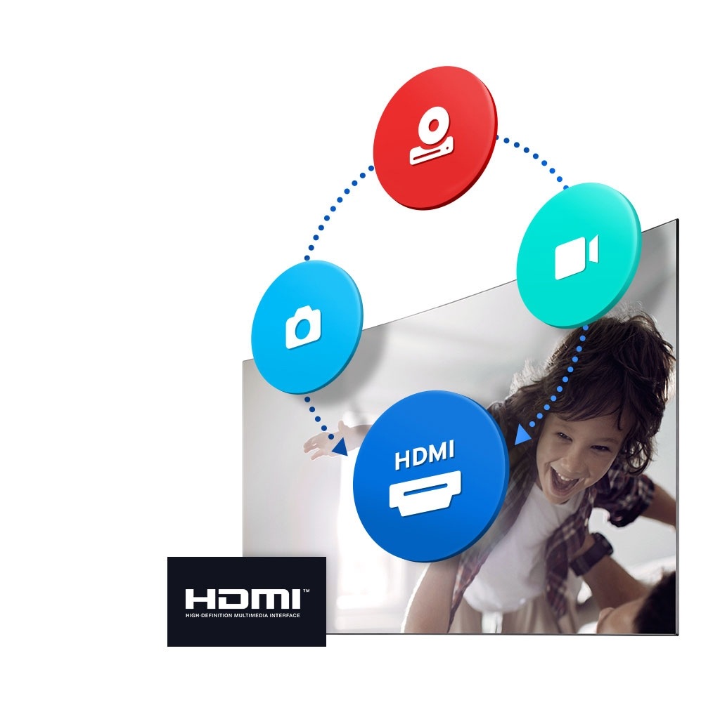 ทีวี Samsung สนับสนุนอินพุต HDMI ซึ่งช่วยให้คุณสร้างศูนย์รวมความบันเทิงแบบมัลติมีเดียในห้องนั่งเล่นของคุณเอง เชื่อมต่อ HDMI เข้ากับทีวีของคุณโดยตรง เพื่อรับชมคอนเทนต์ที่หลากหลายจากอุปกรณ์หลายเครื่อง