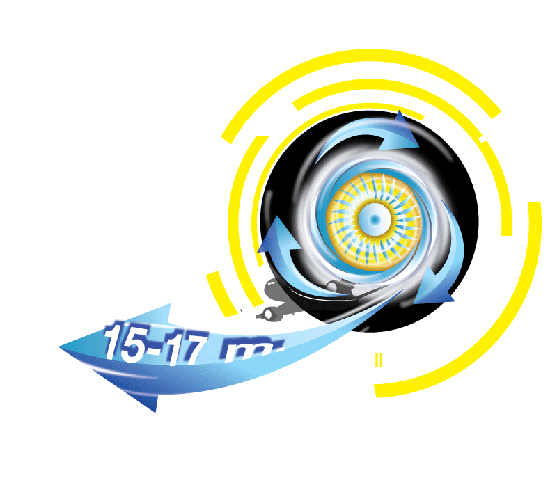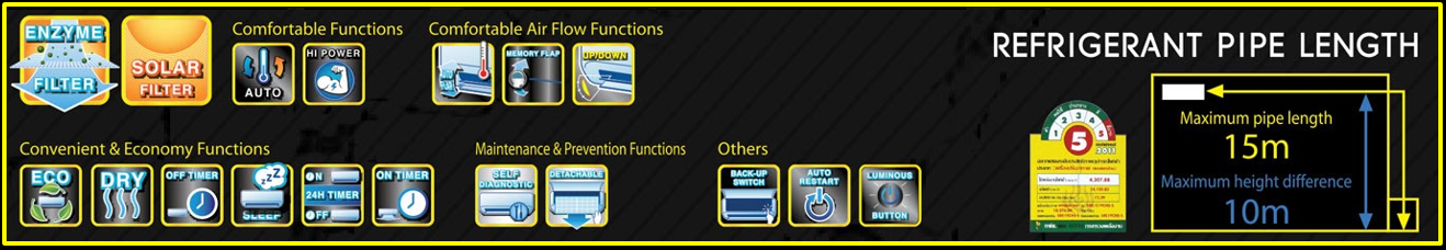 เทคโนโลยีการกระจายอากาศ เย็นเร็วด้วยระบบกระจายลมที่ใช้เทคโนโลยีเดียวกับใบพัดในเครื่องยนต์เจ็ททำให้สามารถส่งลมได้ไกล 15 - 17 เมตร