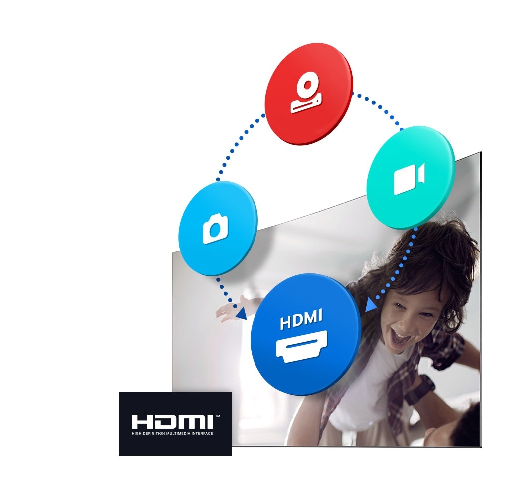 » สร้างพื้นที่ความบันเทิงของคุณเอง « ทีวี Samsung สนับสนุนอินพุต HDMI ซึ่งช่วยให้คุณสร้างศูนย์รวมความบันเทิงแบบมัลติมีเดียในห้องนั่งเล่นของคุณเอง เชื่อมต่อ HDMI เข้ากับทีวีของคุณโดยตรง เพื่อรับชมคอนเทนต์ที่หลากหลายจากอุปกรณ์หลายเครื่อง