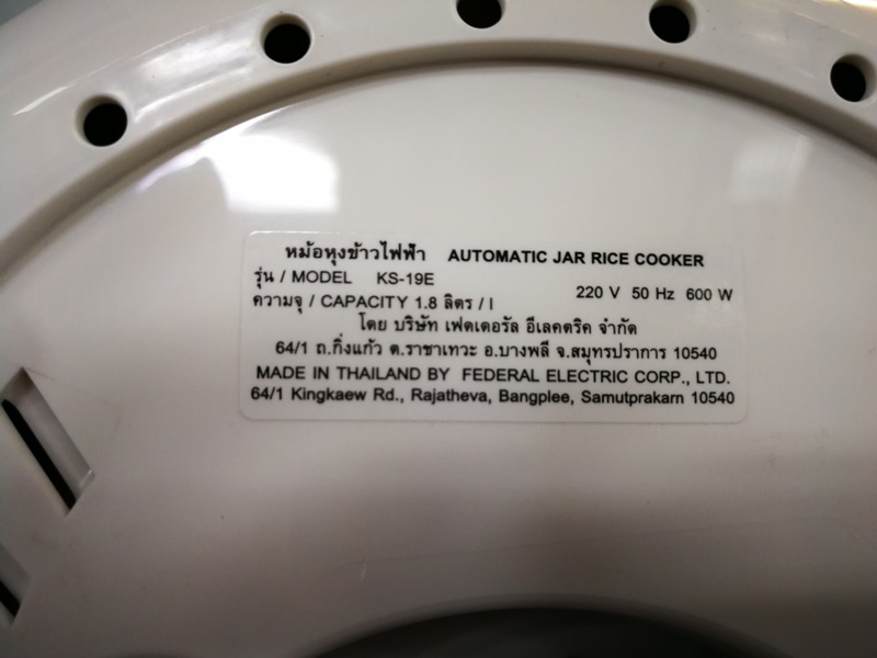 - กำลังไฟฟ้าเข้า ขณะหุง 600 วัตต์